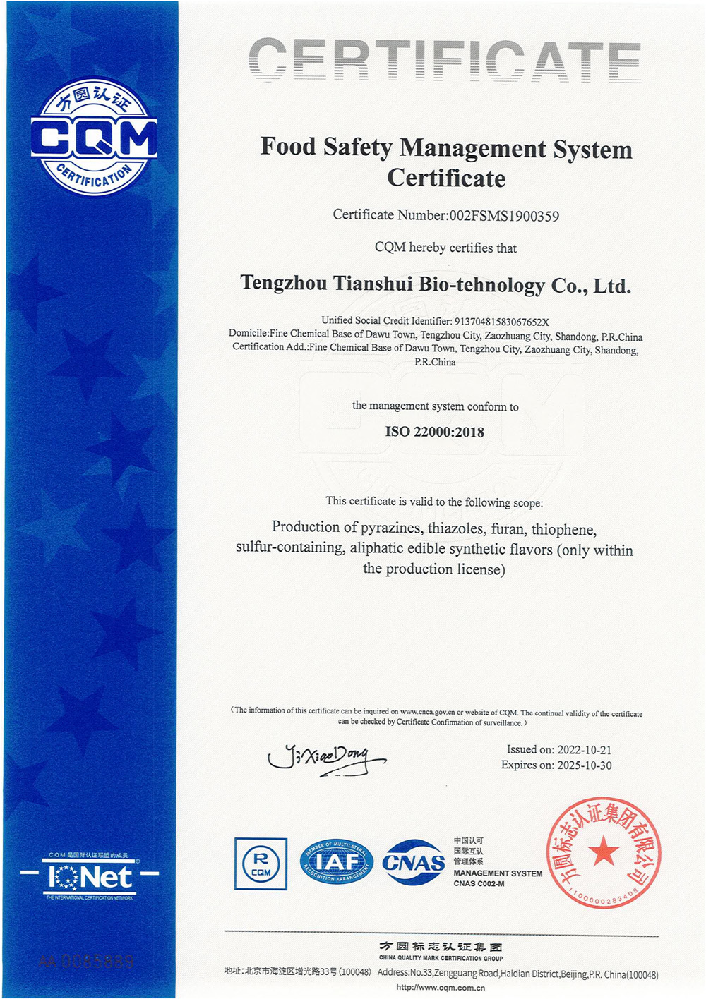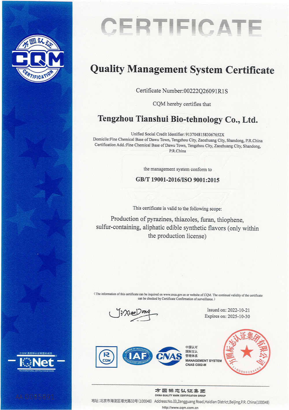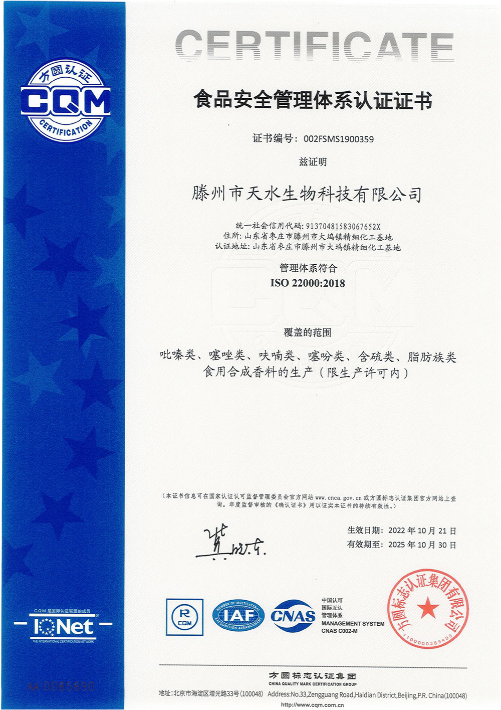 滕州市天水生物科技有限公司成立于2011年9月,是目前國內(nèi)雜環(huán)類合成食品香料、日化香料和醫(yī)藥中間體生產(chǎn)經(jīng)營的綜合性企業(yè)。坐落于山東省滕州市生物醫(yī)藥產(chǎn)業(yè)基地,總投資5000余萬元,占地面積約30000平方米,員工百余人。公司先后被評為高新技術企業(yè)、專精特新中小企業(yè)、科技型中小企業(yè),建有市級重點實驗室1處,并先后獲得ISO9001質(zhì)量體系認證、ISO22000食品安全體系認證、kosher認證和Halal認證。是香精香料及食品配料協(xié)會會員單位及滕州市中小企業(yè)協(xié)會理事單位。